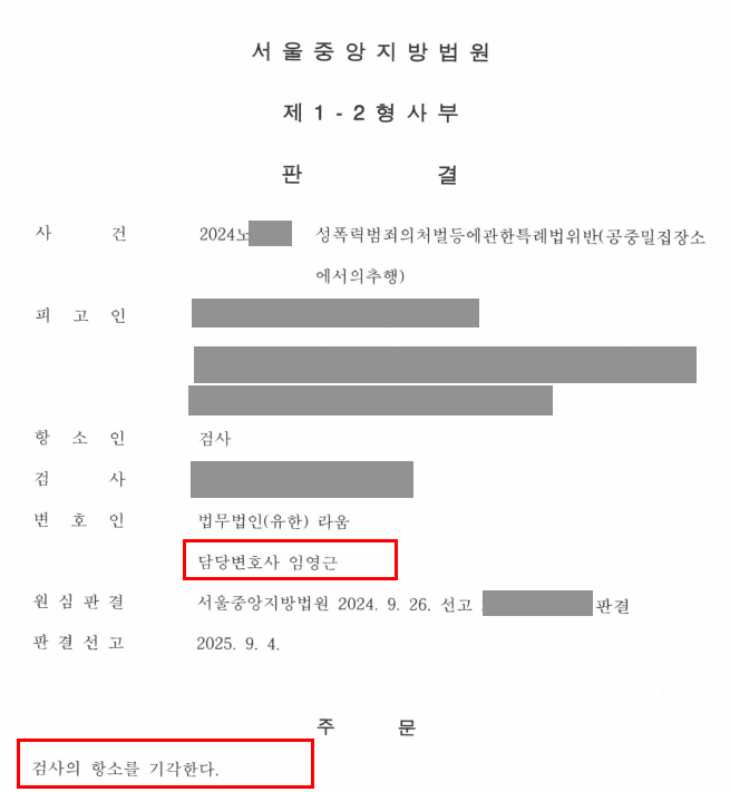오늘은 지난번 “성폭법위반(공중밀집장소에서의추행) 무죄 승소사례”건에 관하여 검사가 항소하였고,