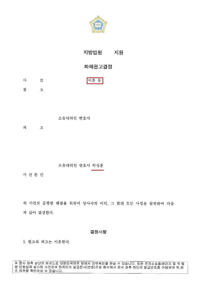 화해권고결정문 공유드립니다.