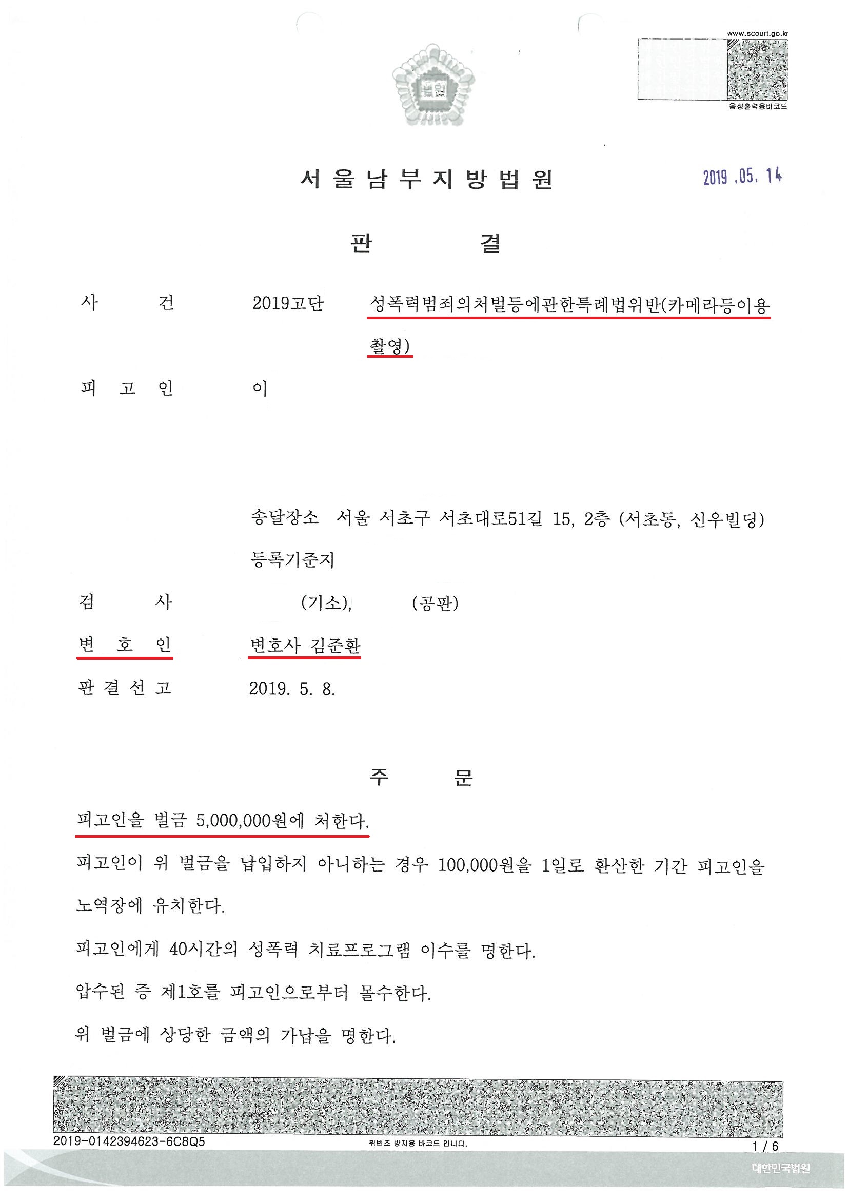 총 13명의 피해 여성을 촬영하였고, 초범이 아닌 의뢰인님은 실형이 선고될 수 있는 매우 위험한 상황에 있었습니다. 그러나 안내해드린 양형자료들과 선처를 호소하는 변호인의견서 및 재판 진행을 통해 서울남부지방법원은 의뢰인님을 벌금에 처한다는 선고를 하였습니다.