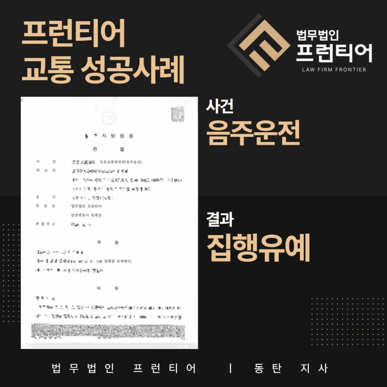 다행히도 음주운전 3진 혐의에 대해 ‘집행유예’로 선처받을 수 있게 되었습니다.