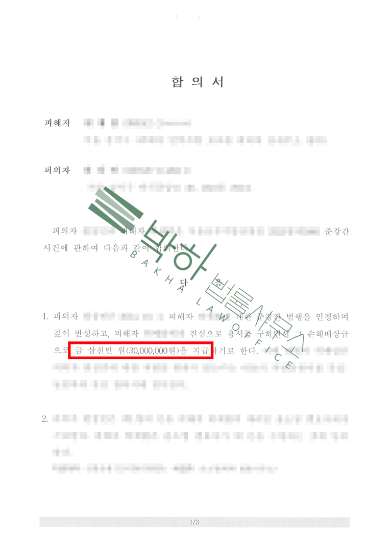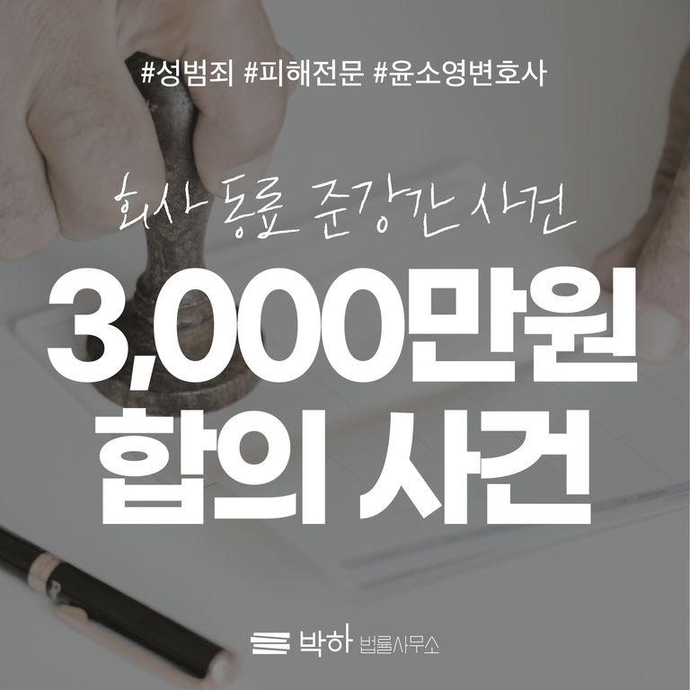 결국 성범죄 피해자 전문 변호사의 논리적인 압박과 단호한 태도에 가해자 측은 기존 제시액에서 1,000만 원을 증액하였고, 총 3,000만 원으로 신속하고도 원만하게 합의를 이끌어 내었습니다.