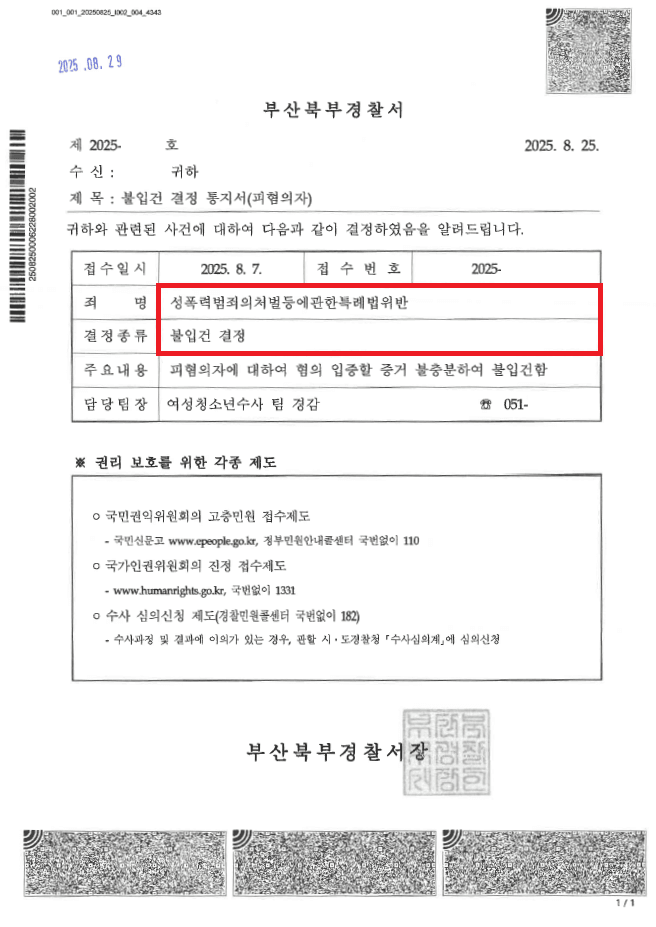 이러한 저의 조력을 바탕으로 A씨는 경찰단계에서 '불입건(혐의없음)' 결정을 받음으로써 압수·수색을 당하지 않고 수사개시통보가 되지 않으며 수사기록도 남지 않는 등 어떠한 불이익도 받지 않은 채 사건을 해결할 수 있었습니다.