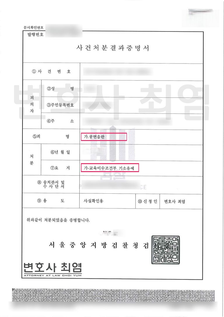 의뢰인은 불특정 다수가 수면을 취하고 있는 장소에서 옆에 있던 사람과 서로의 성기를 잡고 자위행위를 하는 등 음란행위를 하였습니다 사건은 공연음란으로 수사되었으며, 자칫 잘못하면 전과와 함께 사회생활에 심각한 불이익이 따를 수 있는 상황이었습니다.