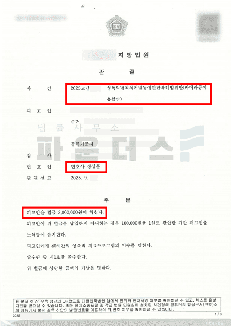 재판 절차에서 의뢰인이 혐의를 인정하고 있고 반성하고 있음을 전달하였고 결과적으로 성관계 불법촬영으로 문제된 카메라등이용촬영 혐의에서 벌금형으로 실형 위기에서 벗어날 수 있었습니다.