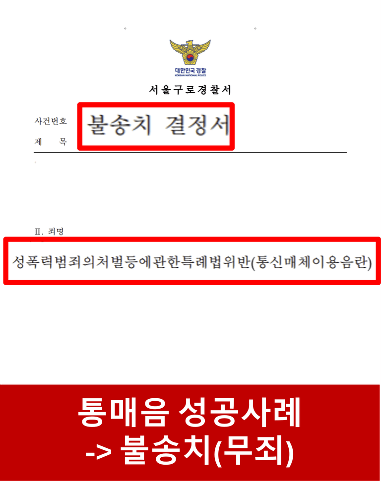 그 결과, 감사하게도 본 사건은 증거 불충분으로 혐의 없음(불송치) 처분이 내려졌습니다.