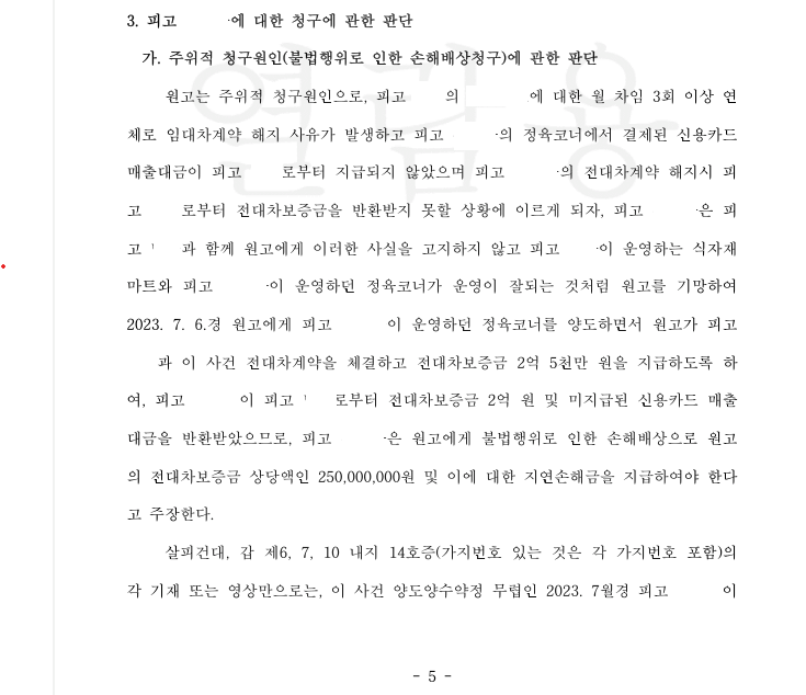 이 사건은 영업을 양수한 양수인이 자신이 임대인으로부터 보증금을 반환받지 못하고, 영업이익이 발생하지 않자, 임대인에 대한 보증금청구, 영업양수인에 대한 손해배상청구를 한 사안입니다.
