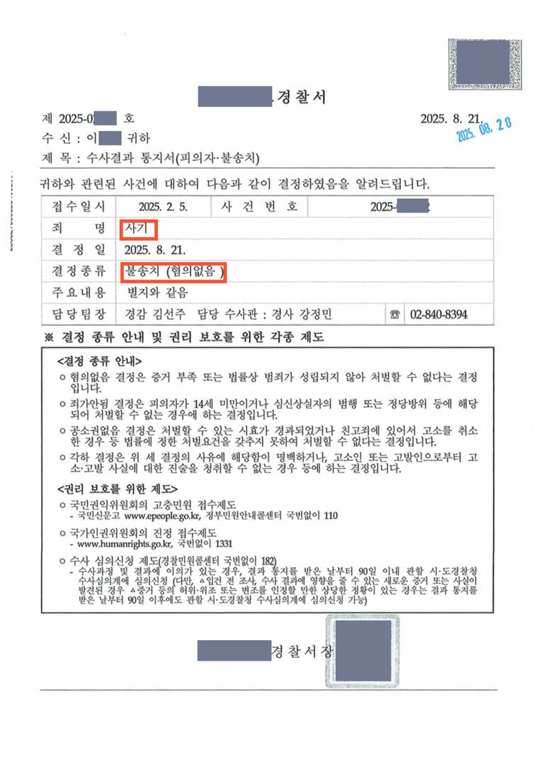 ✅결국, 불송치 결정으로 증명된 무죄