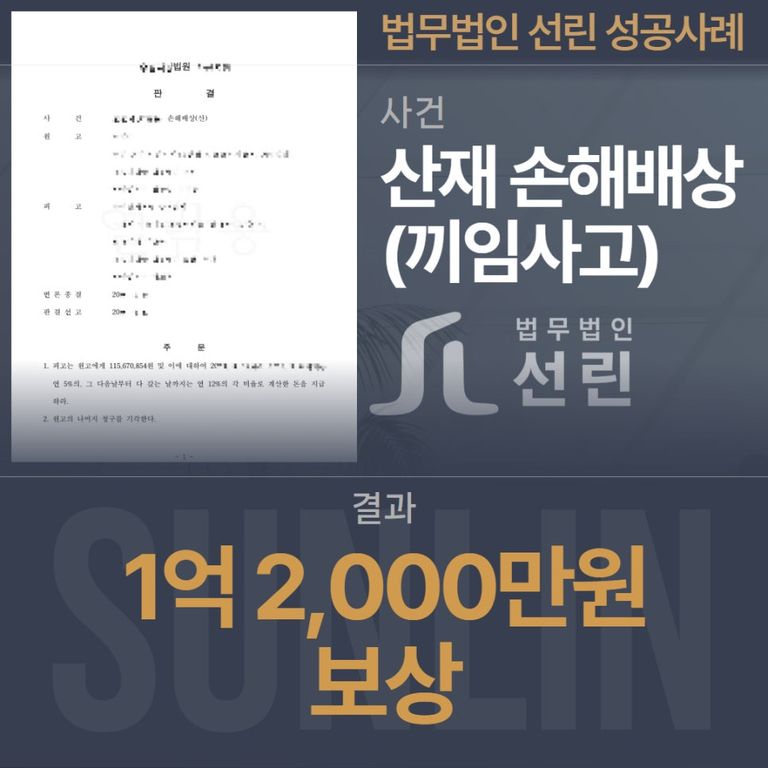산재 손해배상 → 결과 : ‘1억 2,000만원’ 보상 인정