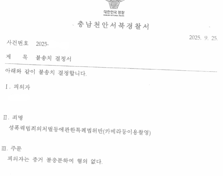 수사관도 의견서 취지에 공감하고 다행히 증거가 없어 혐의를 인정하기 어렵다는 이유로