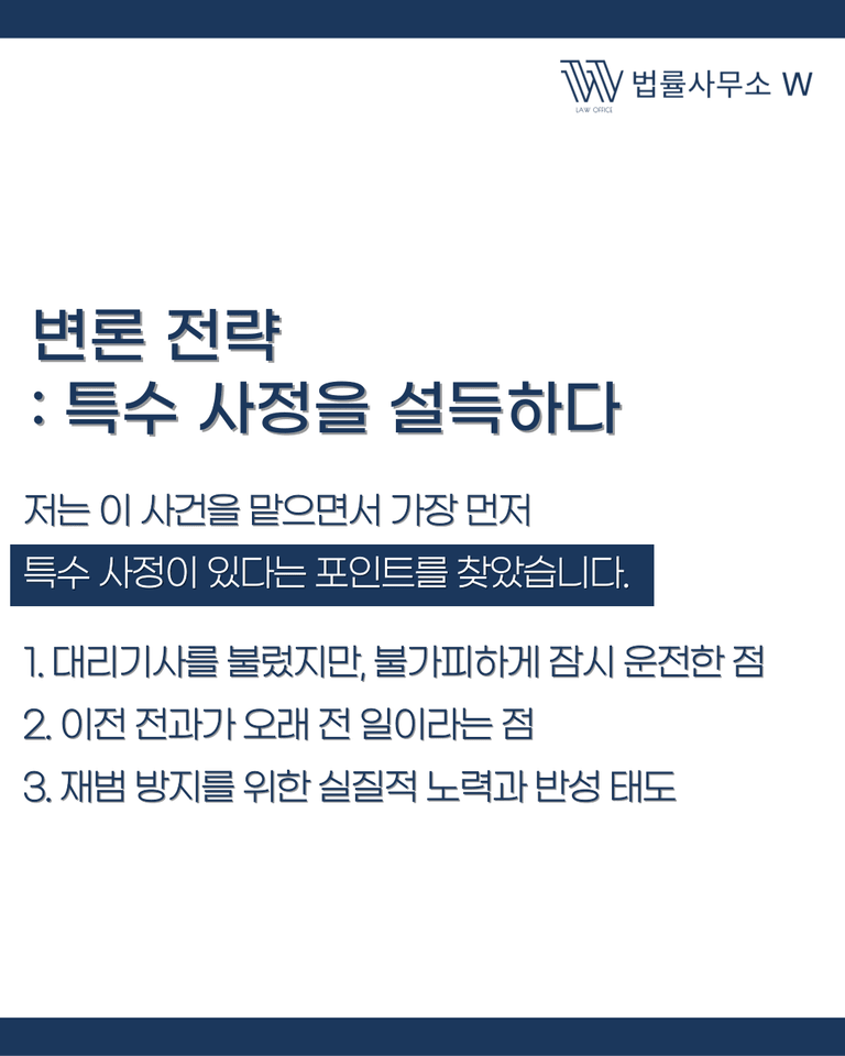 물론 모든 사건에서 동일한 결과가 나오진 않습니다. 그러나 분명한 것은, 사건의 특수성을 충분히 분석하고, 판사에게 납득할 수 있는 설명을 제공한다면 실형을 피할 가능성도 있다는 점입니다. 음주운전 4회차 이상 적발은 더 이상 가볍게 대응할 수 있는 문제가 아닙니다. 초기 대응에서부터 방향을 제대로 설정해야만 결과가 달라집니다.