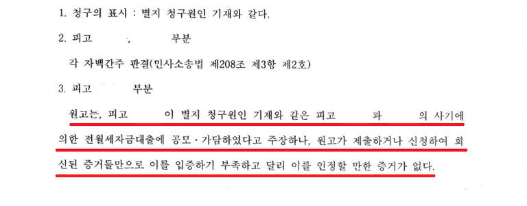3) 원고의 주장이 최소한의 설득력을 갖기 위해서는 피고가 나머지 공동피고들과 함께 사기 범죄 건으로 기소되어 형사처벌을 받았어야 할 것이나, 실제로 피고는 형사 범죄로 입건된 사실조차 없었다.