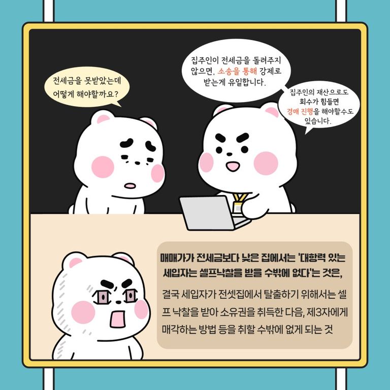 전세금을 못 받아 경매를 하는 세입자 중, 셀프 낙찰을 받고 싶어 하는 세입자는 단 한 명도 없습니다.