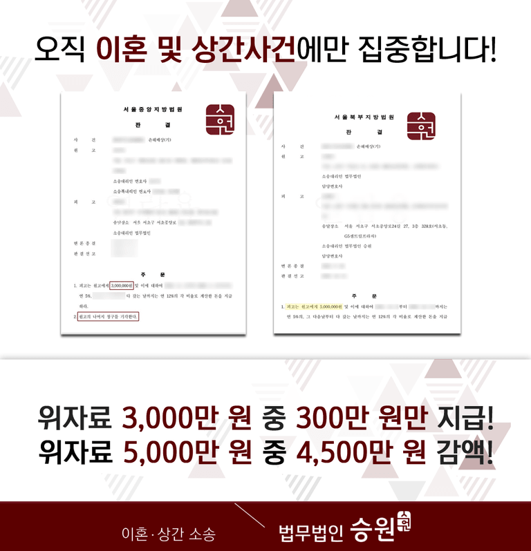 상간 소송을 고려하고 계신 분들은 비용 걱정으로 망설이지 마시고 편히 상담 신청해 주시길 바랍니다.