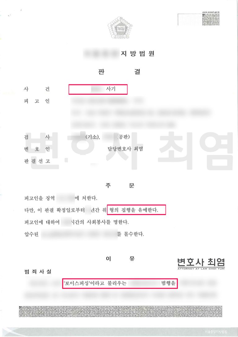 보이스피싱 사건은 피해액이 크고 사회적 비난 가능성이 높아 엄벌이 내려지는 경우가 많습니다. 하지만 가담 정도, 피해 회복, 반성 여부 등에 따라 결과가 크게 달라질 수 있습니다.