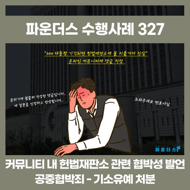 사건의 개요: 의뢰인은 커뮤니티에 “OOO대통령 기각되면 헌재에 불 지를거임 진심”이라는 댓글을 작성하여 공중협박죄로 연루되어 변호인의 조력을 요청하였습니다.