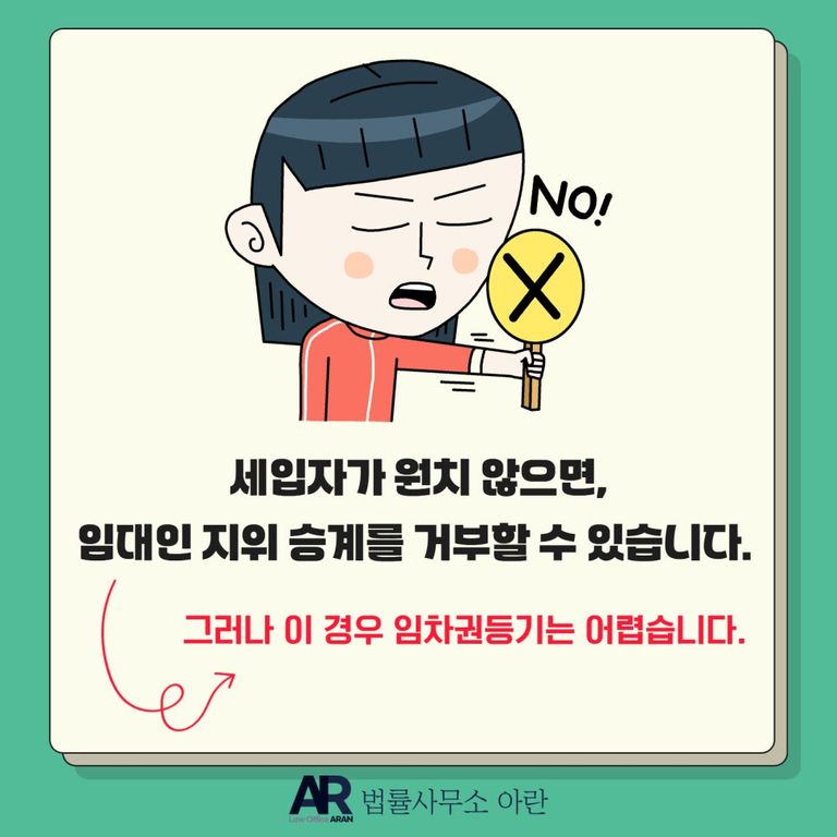 따라서 임차인이 임대인 지위 승계를 거부할 경우, 임차권등기가 불가합니다.