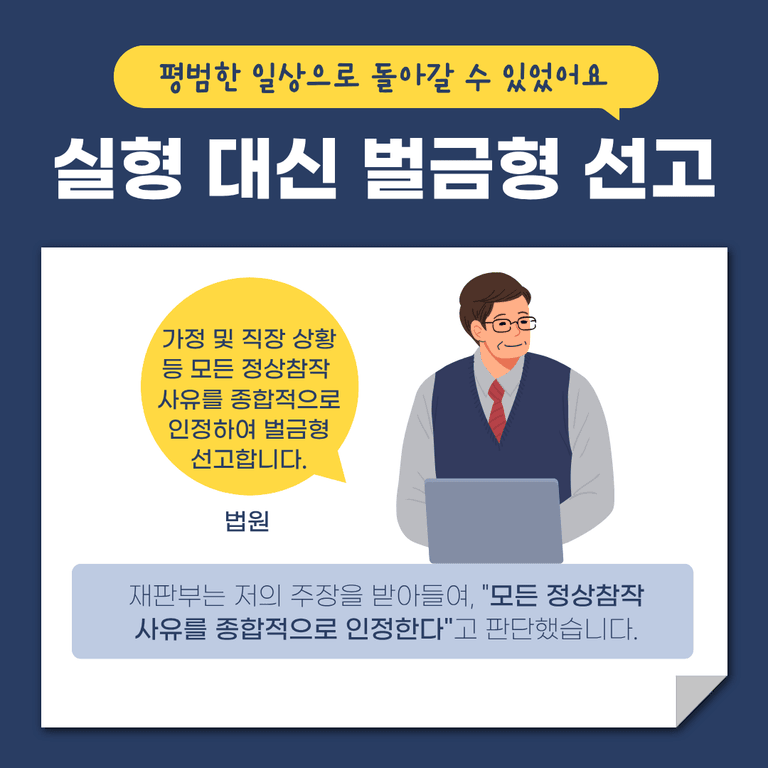 의뢰인은 징역형을 피하고 다시 가정과 직장으로 돌아가