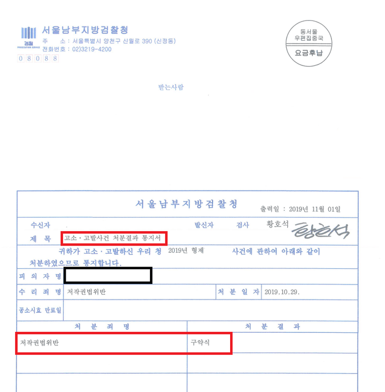 저희는 즉시 저작권법 위반(저작재산권 침해) 혐의로 고소를 진행했습니다.