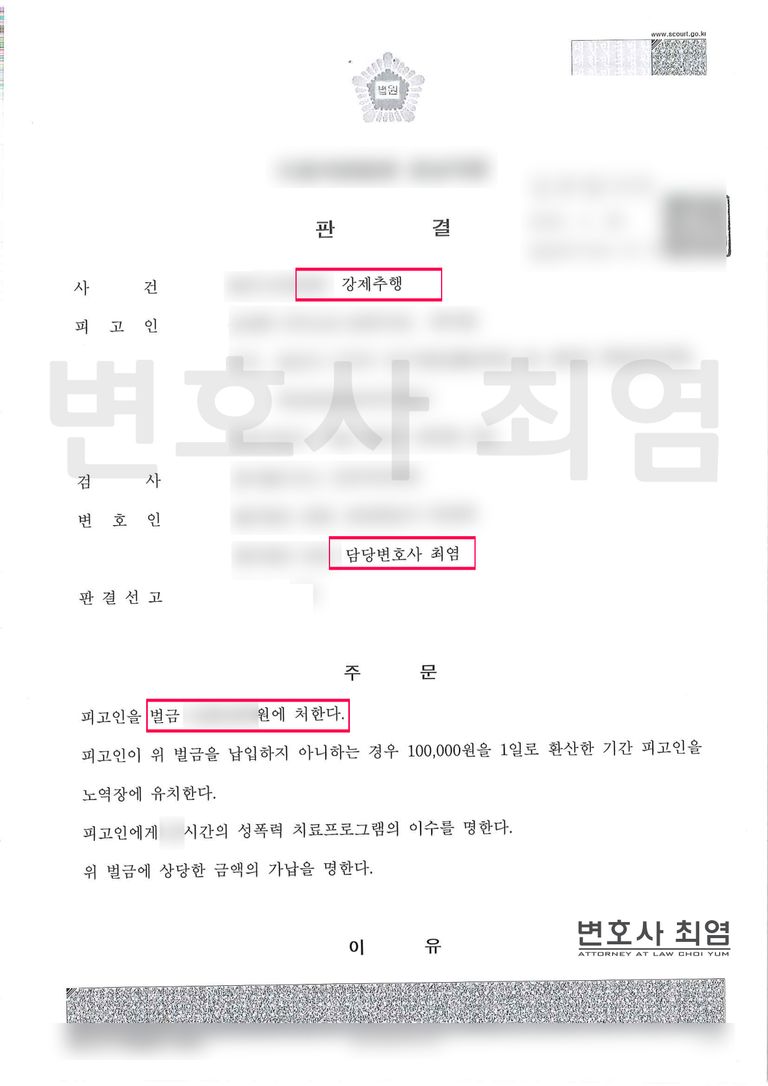 강제추행죄는 반복된 행위나 합의 불성립 시 실형이나 집행유예가 선고되는 경우가 많습니다. 그러나 이번 사건은 변호인의 적극적 변론으로 벌금형에 그쳐 의뢰인이 직업과 사회적 지위를 지킬 수 있었던 의미 있는 사례입니다.