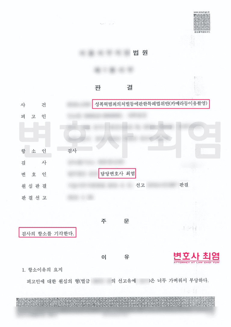 의뢰인은 카메라등이용촬영 혐의로 1심에서 선처를 받았으나 검찰이 형이 가볍다는 이유로 항소를 제기하면서 항소심 재판을 받게 되었습니다. 항소심에서 결과가 뒤집힐 경우 실형이나 더 무거운 형이 선고될 위험이 있었습니다.
