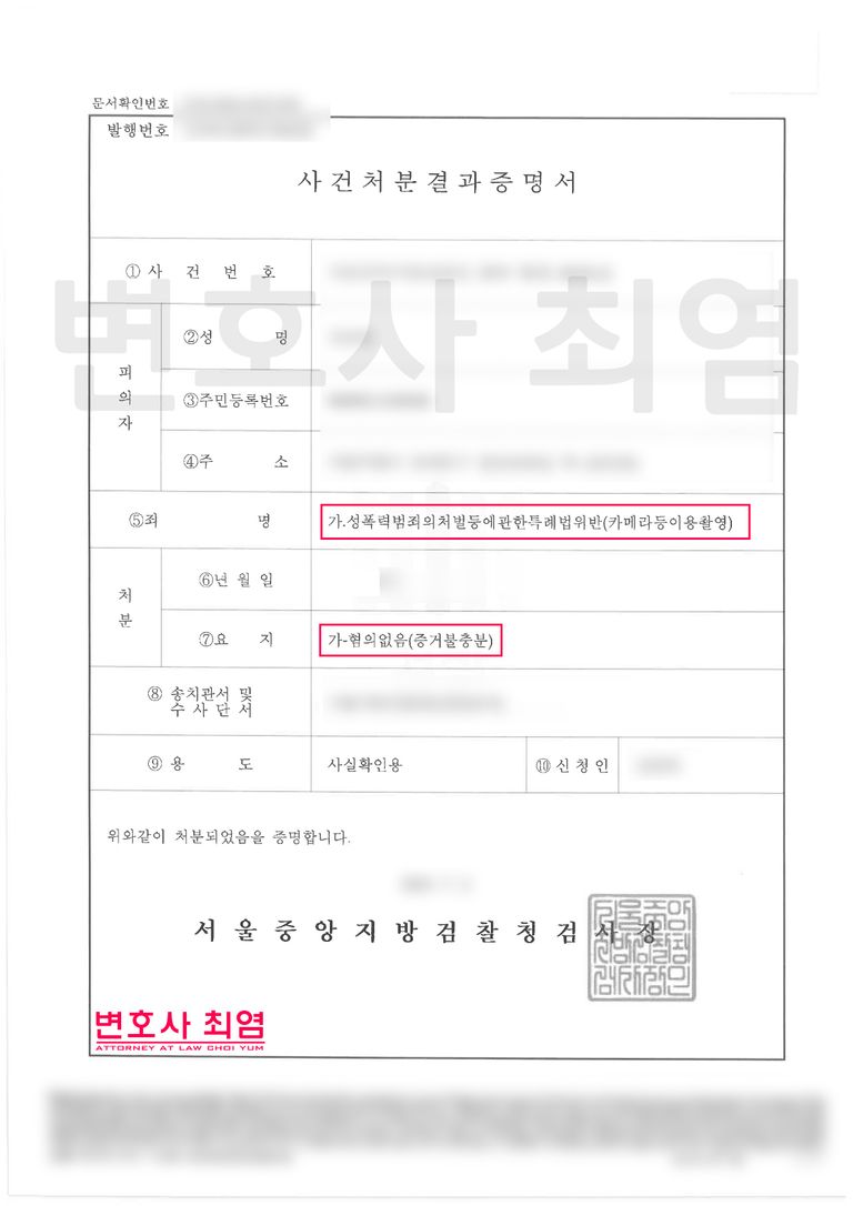 검찰은 증거가 불충분하여 범죄 혐의를 인정하기 어렵다고 판단해 의뢰인에게 혐의없음 불기소처분을 내렸습니다.