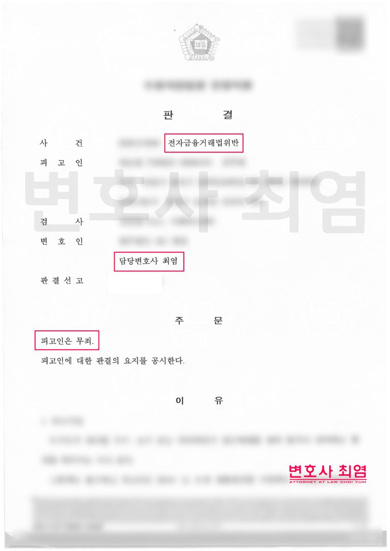 법원은 검찰의 증거만으로는 피고인이 대가를 목적으로 접근매체를 대여했다고 보기 어렵다며 무죄 판결을 선고했습니다.