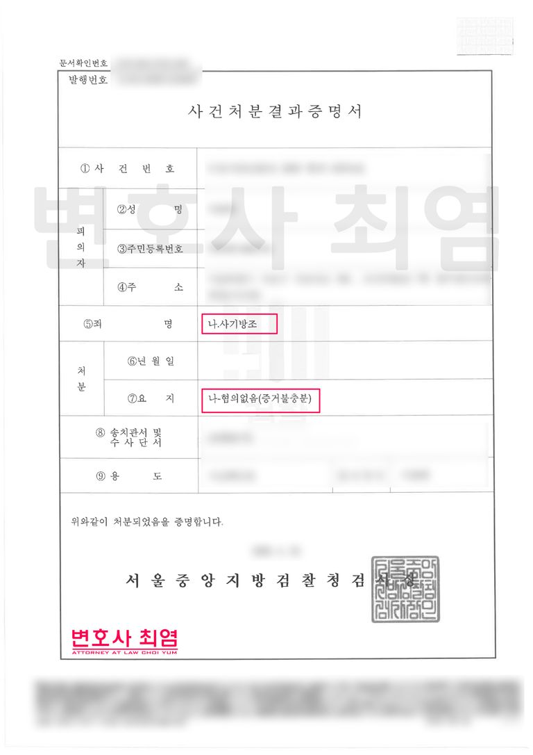 검찰은 변호인의 주장을 받아들여 의뢰인이 보이스피싱 범행에 가담했다고 보기 어렵고 이득을 취한 사실도 없다며 혐의없음 불기소처분을 내렸습니다.