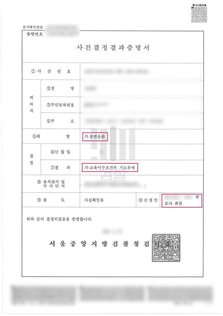 공연음란죄는 초범이라도 기소되는 경우가 많지만 피해 회복과 반성 태도를 충분히 입증하면 이번 사례처럼 교육이수조건부 기소유예 처분으로 종결될 수 있습니다.