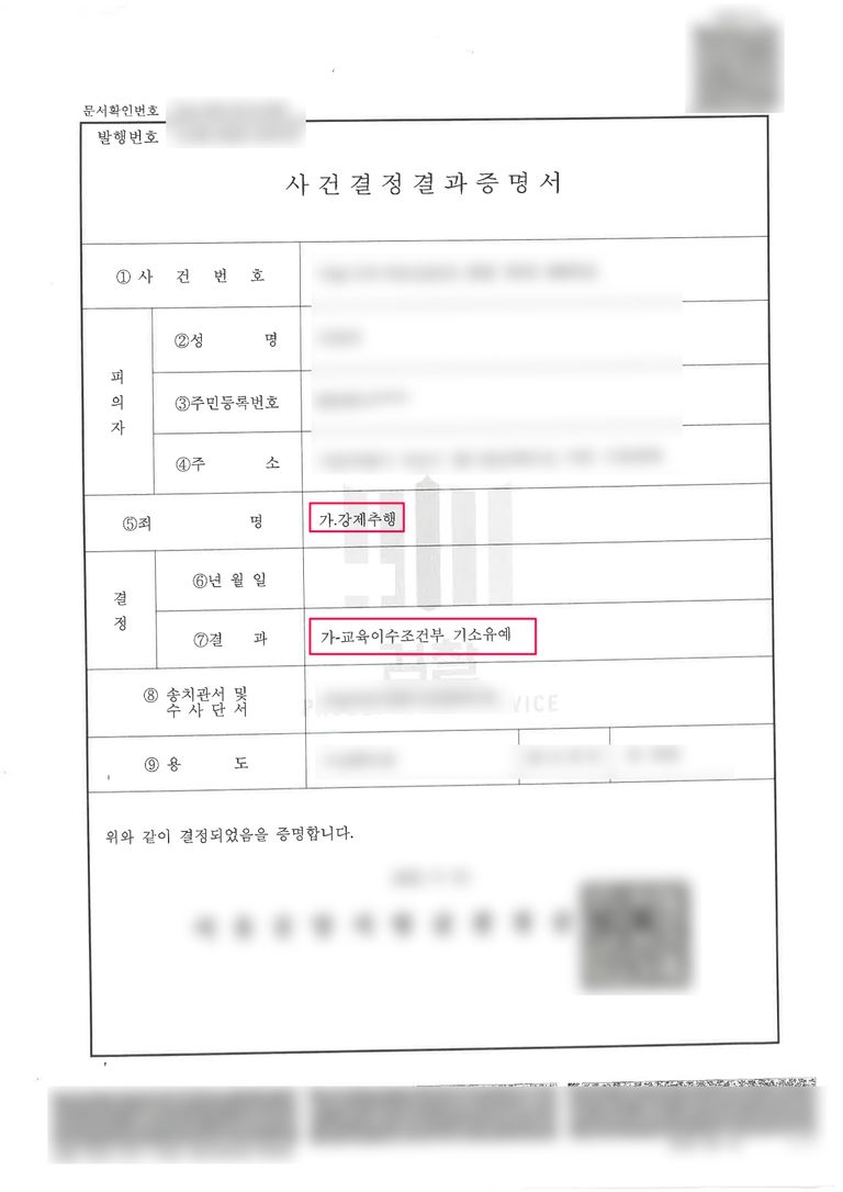 검찰은 변호인의 주장을 받아들여 의뢰인에게 성폭력 재범방지 교육 이수를 조건으로 기소유예 처분을 내렸습니다.