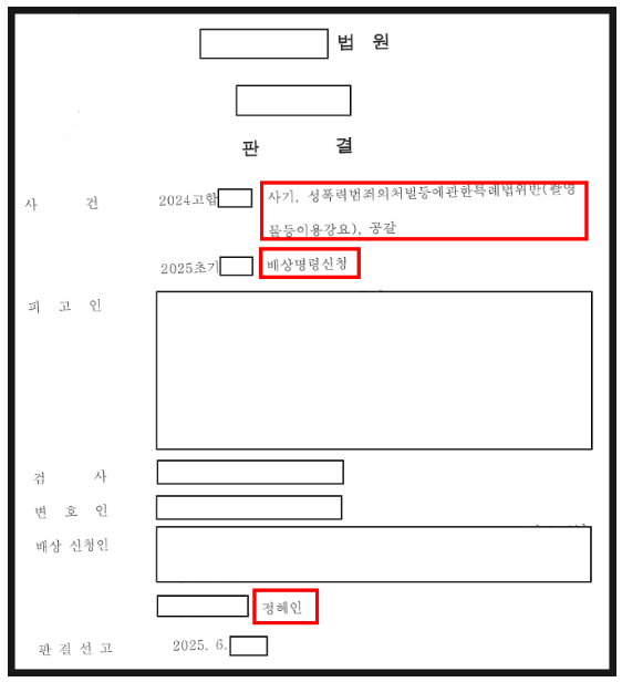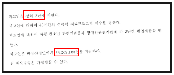 ▶ 공판 단계 : 징역 2년 실형, 배상명령신청 인용