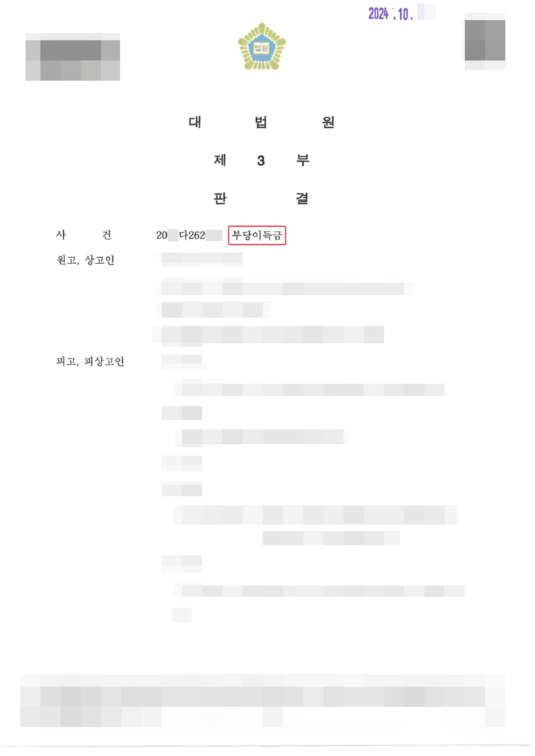 의뢰인들의 경우처럼 장기간 아무 문제없이 집합건물을 사용수익 해오다가, 갑작스럽게 대지권은 소유권을 가지지 못했다는 이유로 거액의 지료상당의 부당이득 반환 청구를 받았다면 매우 당혹스럽고 억울할 것입니다. 그러나 법원은 본건과 마찬가지로 대지 부분의 소유권이 없는게 사실이라 하더라도 이에 대한 지료청구를 하는 것이 신의성실의 원칙에 반하여 허용되지 않는다고 보기도 하므로, 소송대리인의 도움을 통해 당사자간에 이러한 신뢰가 존재한다는 점에 관하여 적극 입증할 필요성이 있습니다.