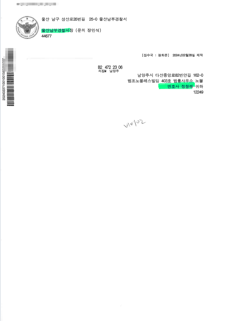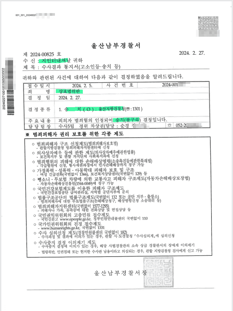 고소하여 기소 송치결정에 이른 사례