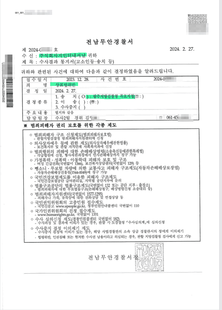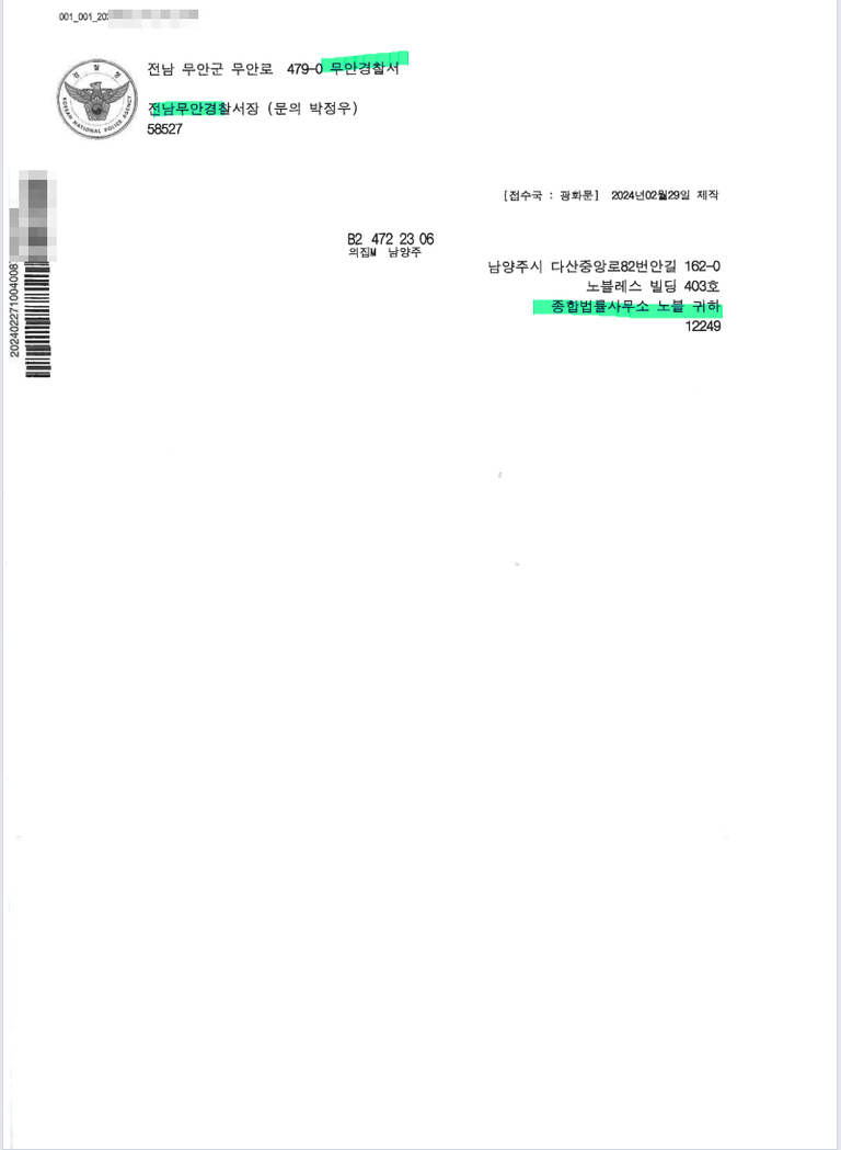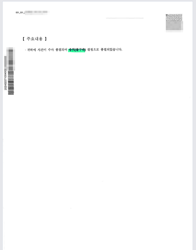 고소하여 기소 송치 성공한 사례