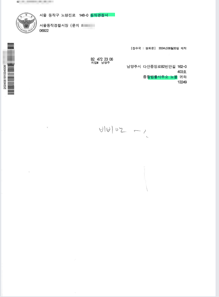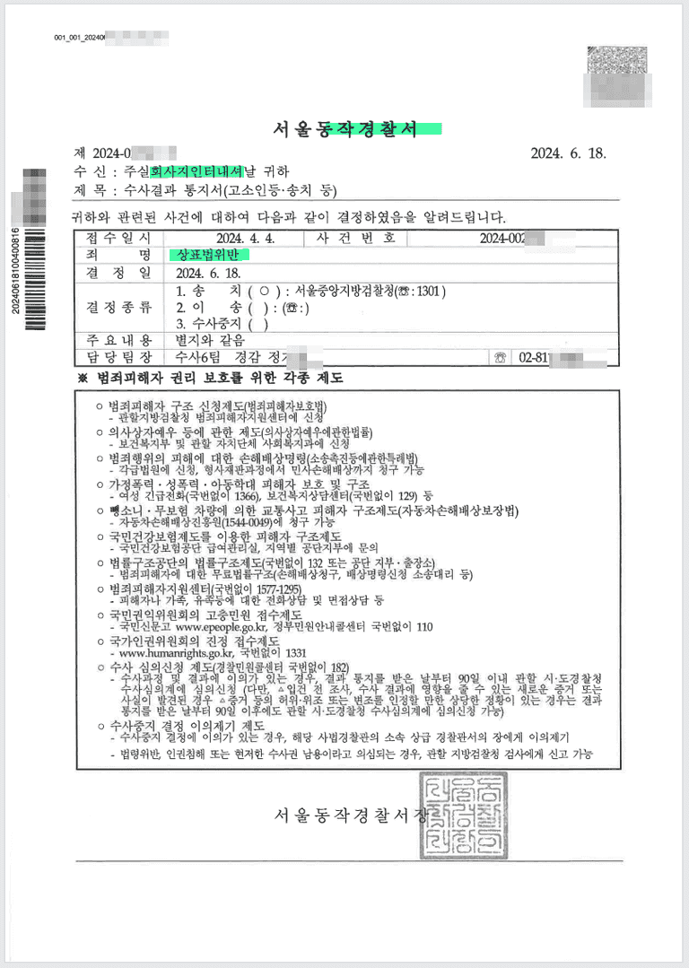 동작경찰서 기소송치 시킨 사례