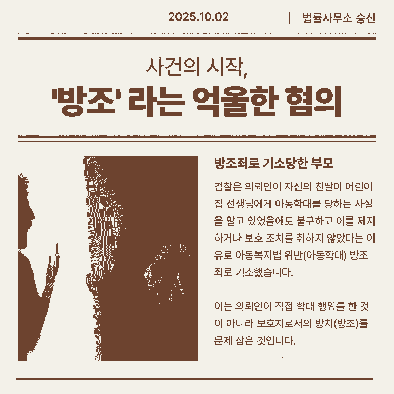 의뢰인의 억울한 아동복지법 위반 방조 혐의에 대해