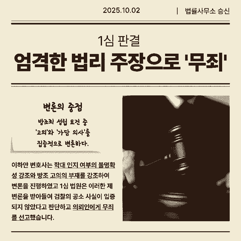 적극적으로 돕는다는 '고의'와 '가담 의사'가 인정되어야 한다는 점을 집중적으로 변론했습니다.