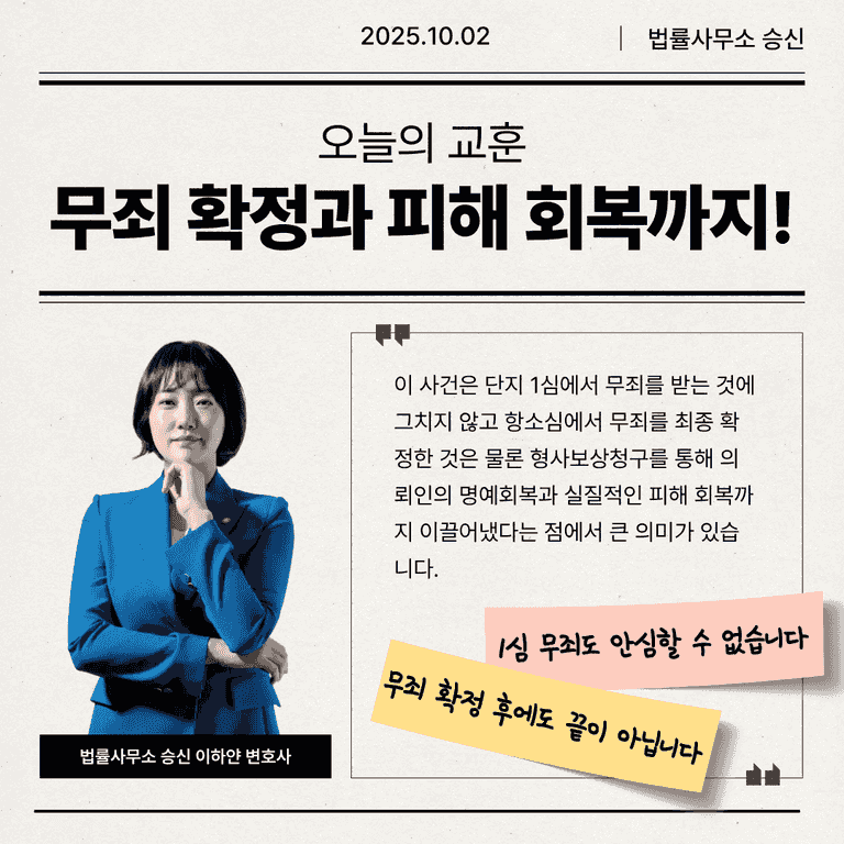 교훈: 형사 사건은 '무죄 확정'과 '피해 회복'까지가 끝입니다.