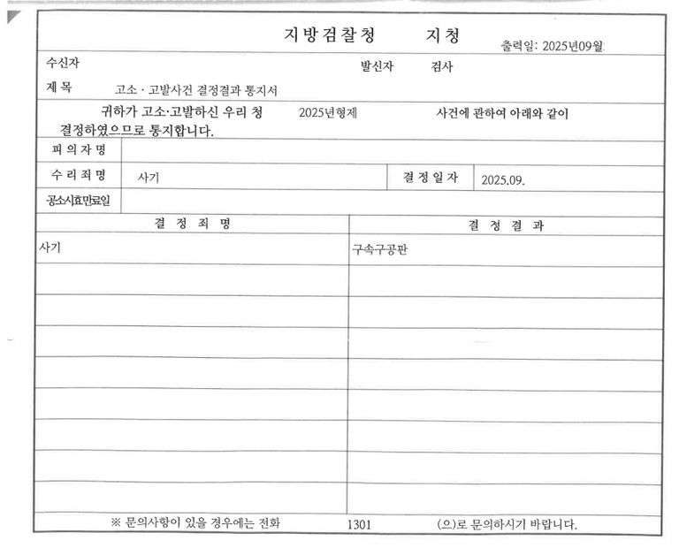 ○ 결론 : 상대방은 구속된 상황에서 사기 혐의로 형사재판을 받게됨.