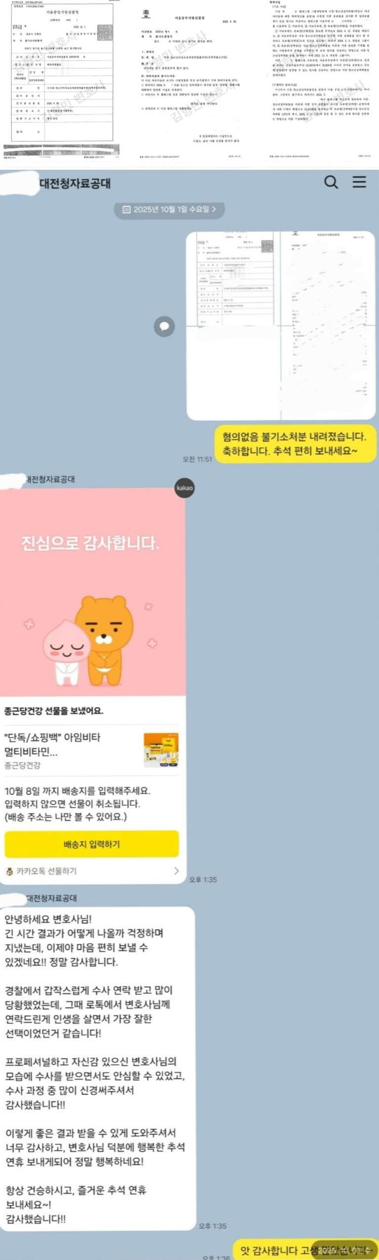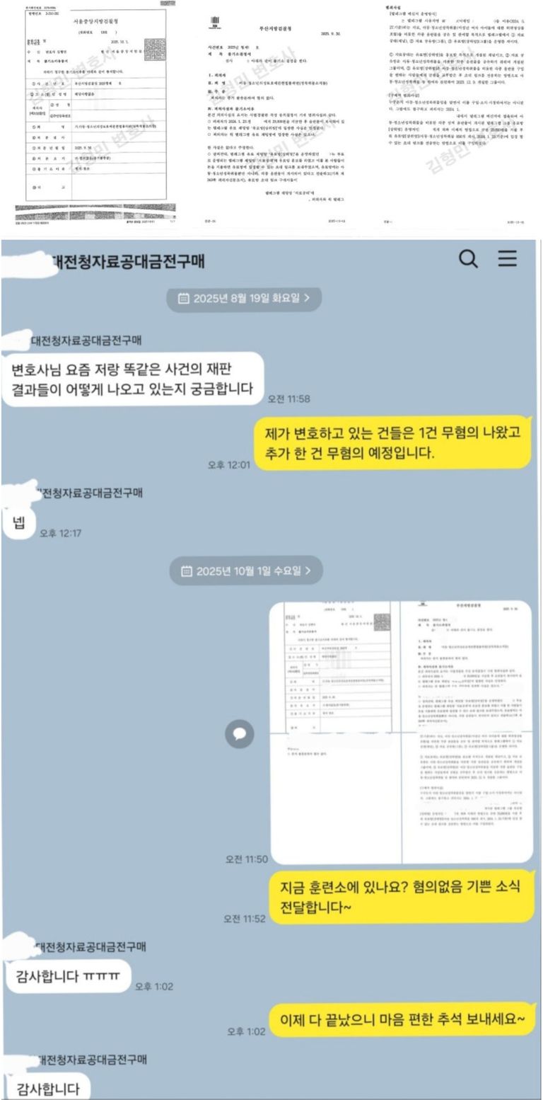 최근 대전경찰청에서 대량으로 소환조사가 이루어졌던 자료공대 사안들에 대하여 2건 무혐의를 받았습니다.