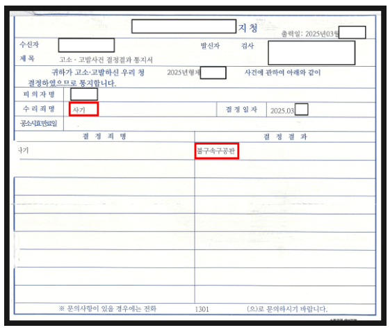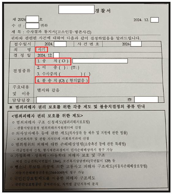 의뢰인은 불송치 부분에 대해 이의신청하지 않고 결과를 받아들이기로 하셨습니다.