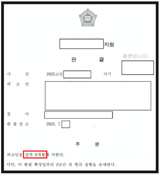 ▶ 공판 단계 : 징역 8월, 집행유예 2년