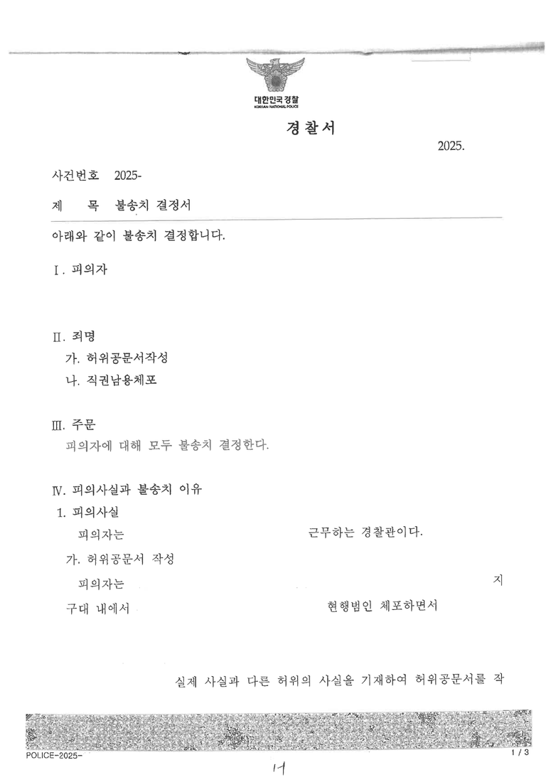장기간 조사가 진행되었지만 다행히 사건은 불송치(혐의없음) 결정을 받았습니다.