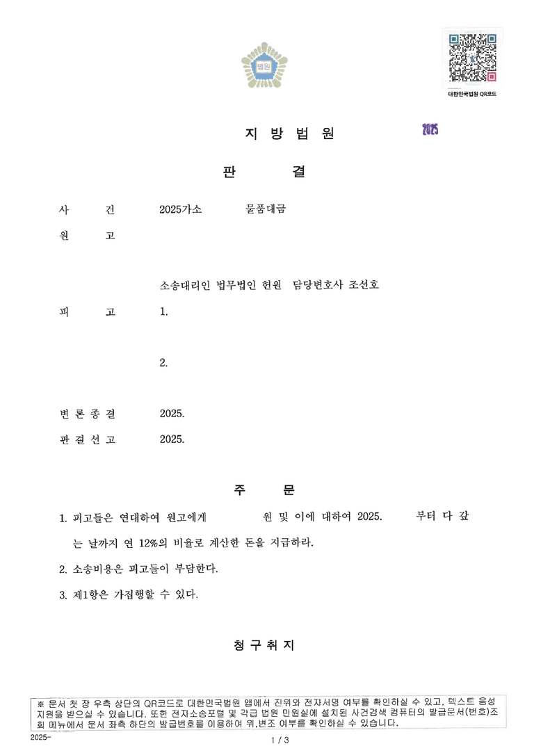 그 결과 원고의 전부 승소 판결을 받을 수 있었습니다.