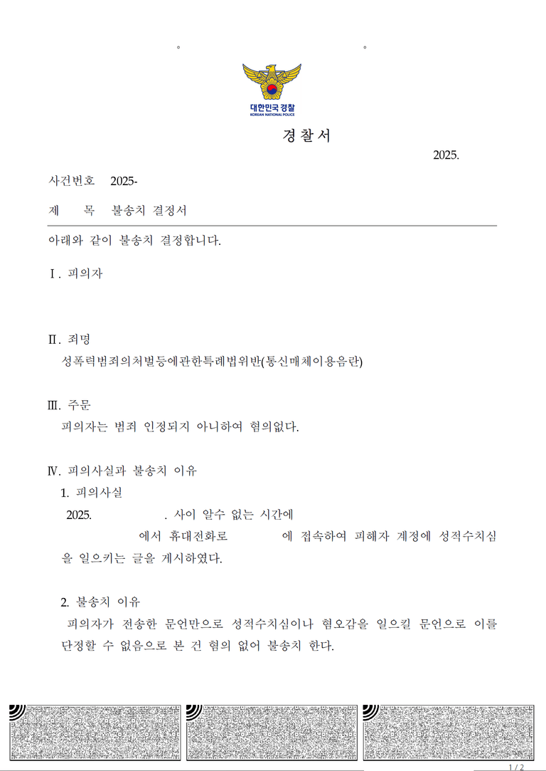 하지만 법리적으로 주장하여 불송치(혐의없음) 결론을 이끌어 냈습니다.