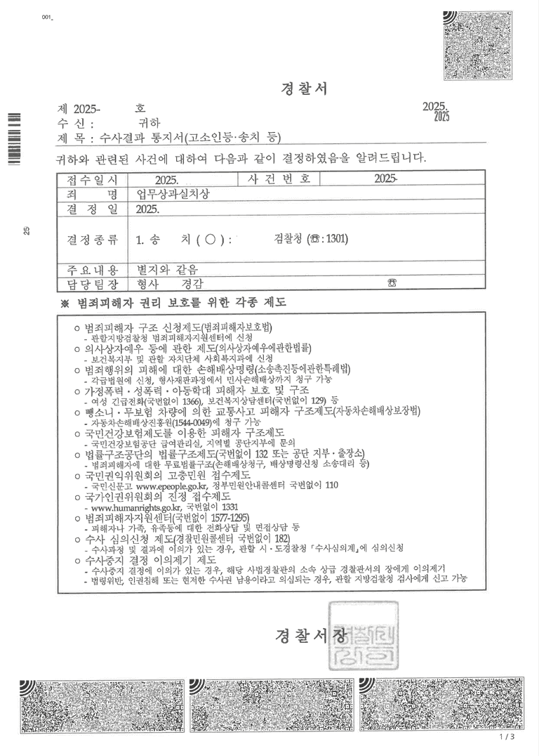 그리고 미리 시술 과정이나 이후의 사정들을 종합한 의견서를 제출하여 상대방에 대한 송치를 이끌어냈습니다.