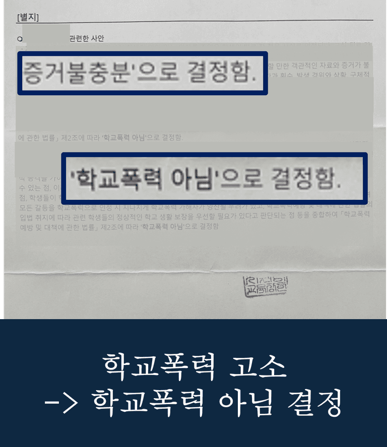 학교폭력대책심의위원회는 사실관계, 학생들의 관계, 피해 정도 등을 종합적으로 검토했습니다. 그 결과, 이 사건은 학교폭력으로 보기 어렵다는 판단을 내렸습니다. 최종적으로 본 사안은 “학교폭력 아님”으로 결정되었고, 의뢰 학생은 학폭 기록이나 징계 없이 사건을 마무리할 수 있었습니다.