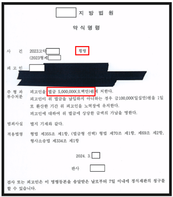 고소장 제출 후 약 1년 만에 약식명령이 발부되며 사건이 마무리되었습니다.