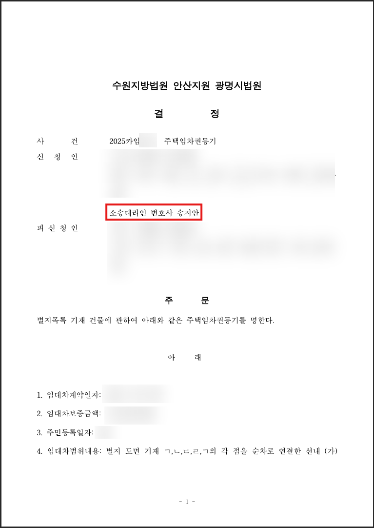 전세보증금반환 사건을 진행하는 경우 반드시 선제적으로 진행해야 하는 것이 바로 주택임차권등기명령 신청입니다. 법률사무소 송지에 사건을 의뢰하실 경우 이와 같은 절차를 놓치지 않고 함께 꼼꼼하게 체크하여 드립니다.