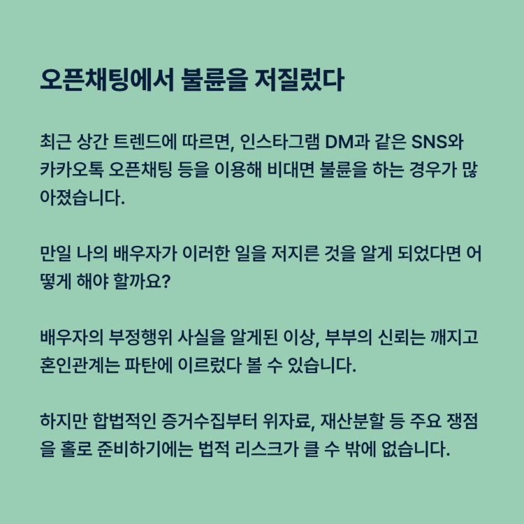 오픈채팅으로 외도 저지른 사실 알게 되었다면
