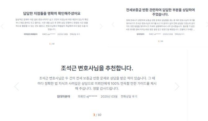 법률시장은 단순히 ‘누가 유명한가’보다, ‘누가 실제로 믿을 수 있는가’가 더 중요합니다. 의뢰인들은 변호사의 말보다 다른 의뢰인의 경험을 더 신뢰합니다. 그래서 “후기가 곧 평판이다”라는 생각으로 모든 사건에 임합니다. 제 로톡 후기를 보면 공통된 문장이 반복됩니다.